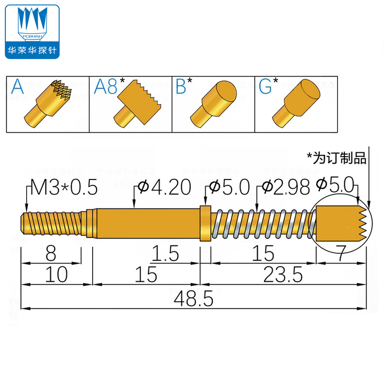 這兩種探針設(shè)計(jì)有特定的工作行程和彈簧力,使其能夠應(yīng)對(duì)高達(dá)50A或更高的持續(xù)電流。這些探針的結(jié)構(gòu)設(shè)計(jì)通常包含高質(zhì)量材料,如鍍金的針桿和針管,以提高導(dǎo)電性能和耐腐蝕性,確保長(zhǎng)期穩(wěn)定和可靠的測(cè)試結(jié)果3。