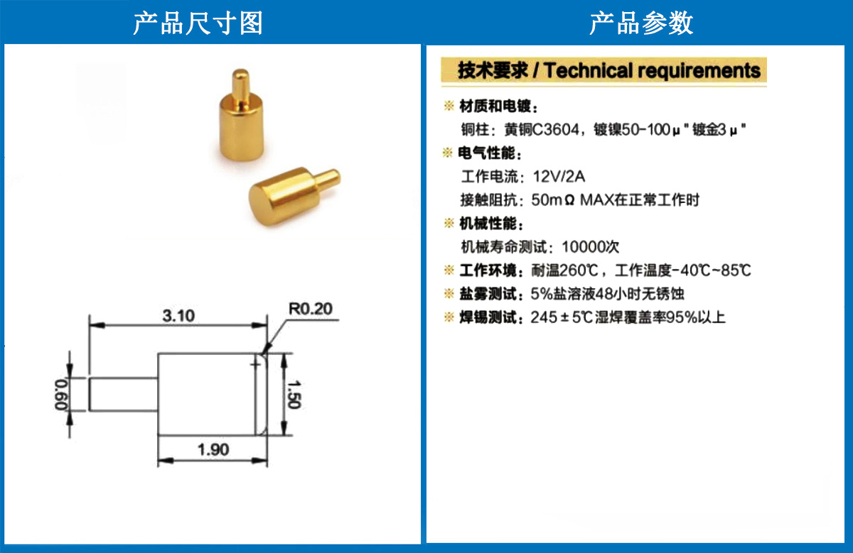 產(chǎn)品介紹:這個針通常用于智能手表,藍(lán)牙耳機(jī)上的有充電的功能,但是探針總體來說還是測試的