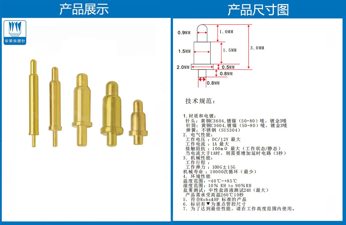 產(chǎn)品介紹:這個(gè)針通常用于智能手表,藍(lán)牙耳機(jī)上的有充電的功能,但是探針總體來說還是測(cè)試的