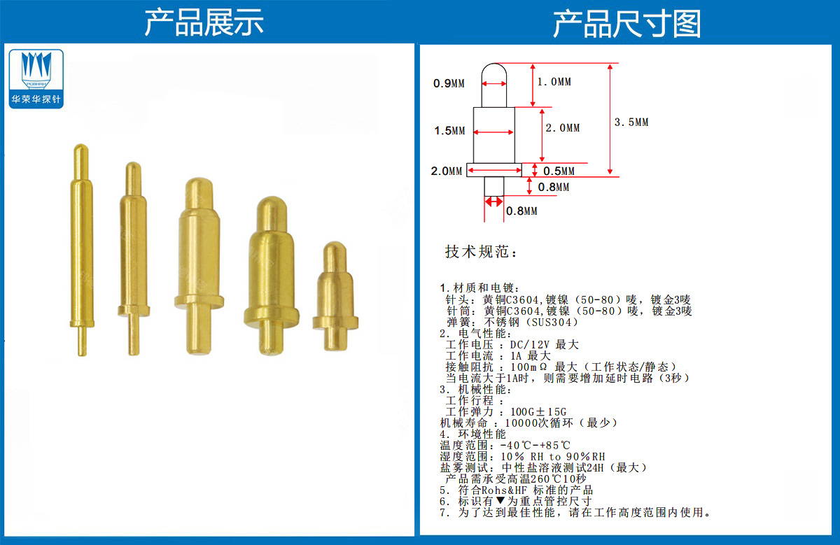 產(chǎn)品介紹:這個(gè)針通常用于智能手表,藍(lán)牙耳機(jī)上的有充電的功能,但是探針總體來(lái)說(shuō)還是測(cè)試的