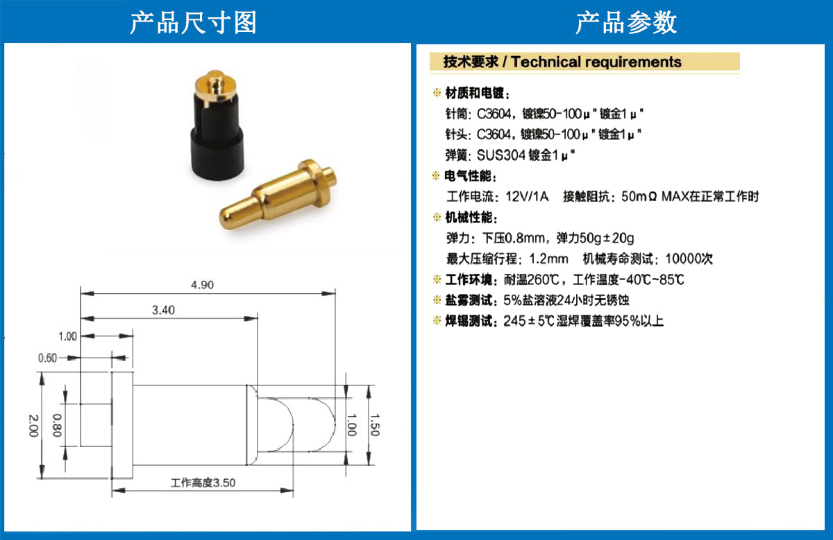 產(chǎn)品介紹:這個(gè)針通常用于智能手表,藍(lán)牙耳機(jī)上的有充電的功能,但是探針總體來說還是測(cè)試的
