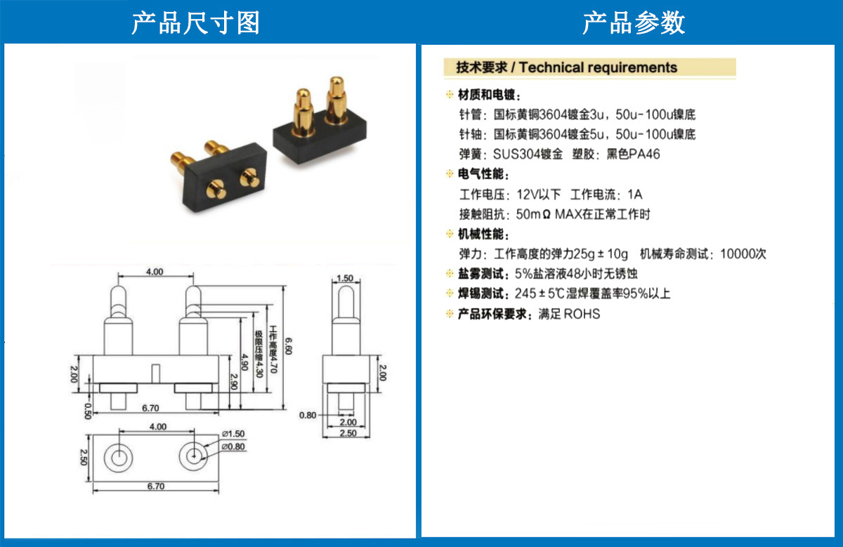 產(chǎn)品介紹:這個(gè)針通常用于智能手表,藍(lán)牙耳機(jī)上的有充電的功能,但是探針總體來說還是測(cè)試的