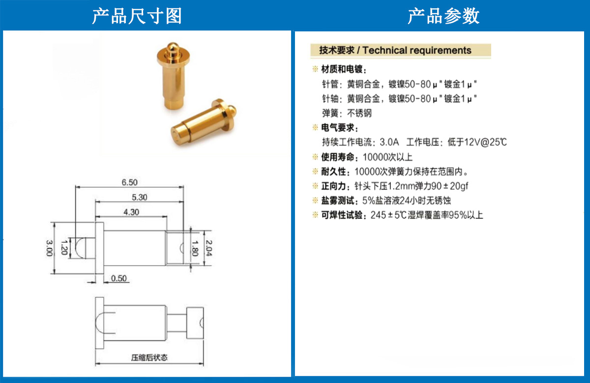 產(chǎn)品介紹:這個(gè)針通常用于智能手表,藍(lán)牙耳機(jī)上的有充電的功能,但是探針總體來(lái)說(shuō)還是測(cè)試的