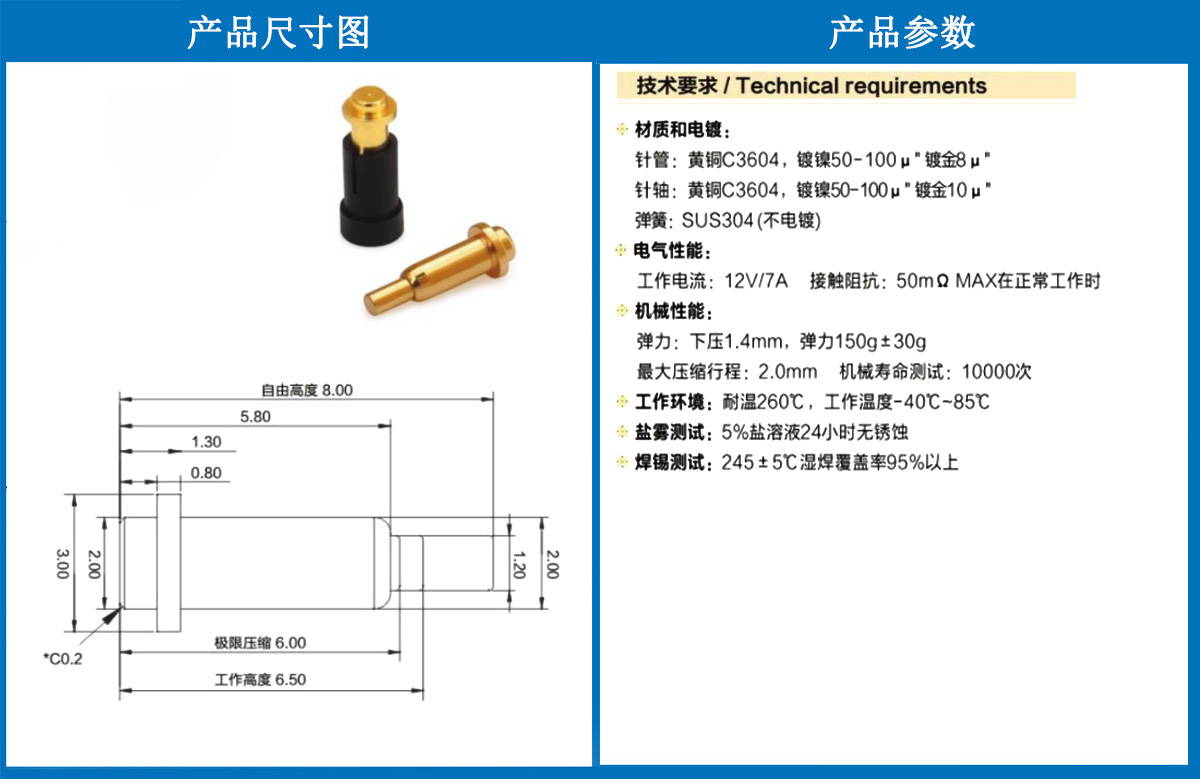 產(chǎn)品介紹:這個(gè)針通常用于智能手表,藍(lán)牙耳機(jī)上的有充電的功能,但是探針總體來說還是測試的