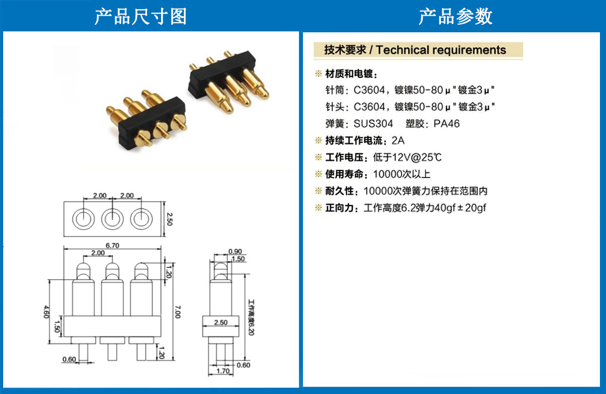 產(chǎn)品介紹:這個針通常用于智能手表,藍(lán)牙耳機(jī)上的有充電的功能,但是探針總體來說還是測試的
