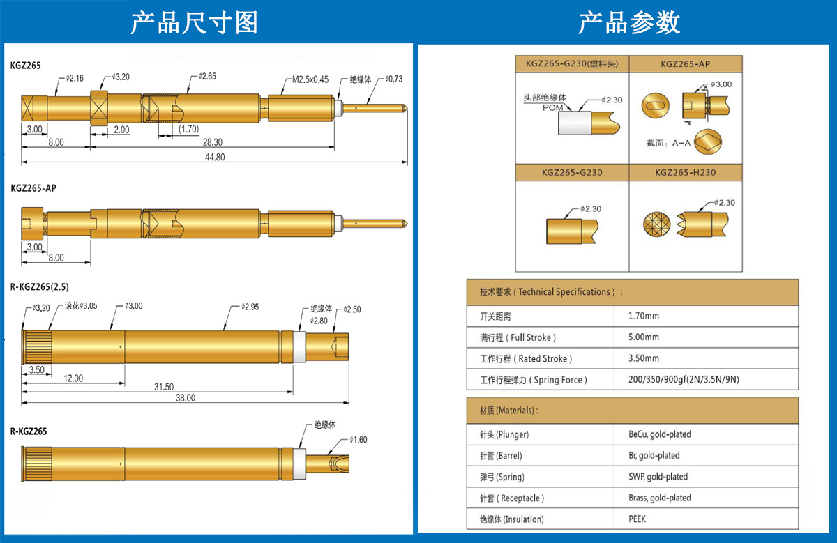 產(chǎn)品簡(jiǎn)介:KGZ165探針、2.65mm測(cè)試針、總長(zhǎng)44.80mm、彈簧針、測(cè)試針