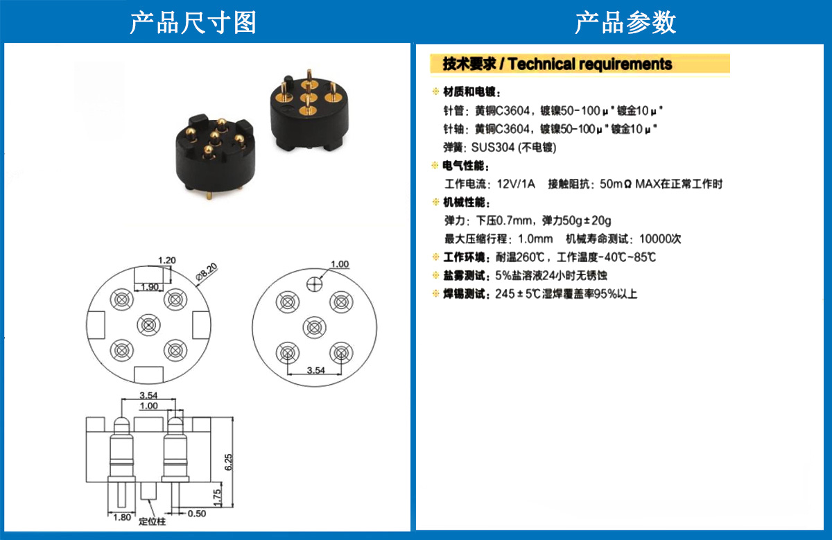 產(chǎn)品介紹:這個(gè)針通常用于智能手表,藍(lán)牙耳機(jī)上的有充電的功能,但是探針總體來說還是測試的